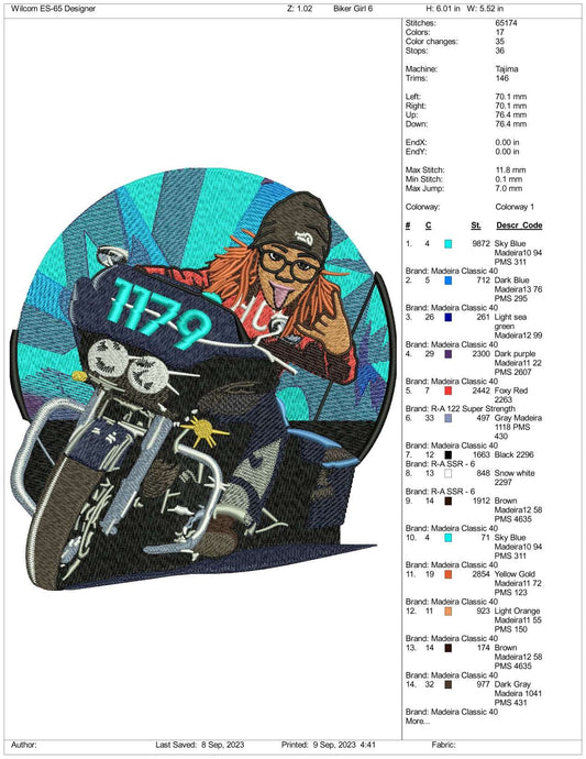 Archivos de diseño de bordado de Chill Biker Girl - 3 tamaños