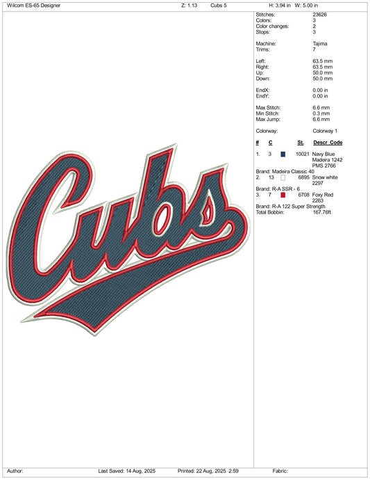 Cubs Embroidery Design Files - 3 Size's