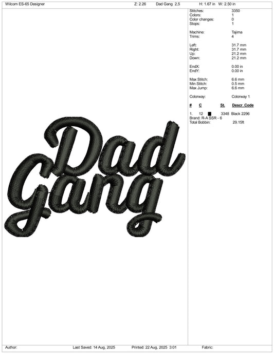 Dad Gang Embroidery Design Files - 3 Size's