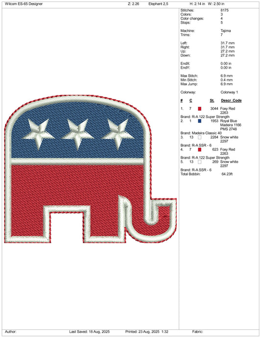 Republican Party (United States) Embroidery Files - 3 Size's