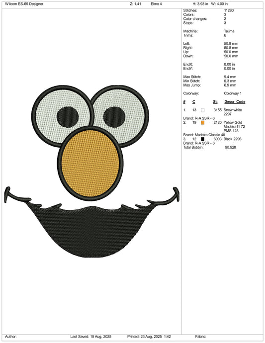 Elmo Face Embroidery Files - 3 Size's