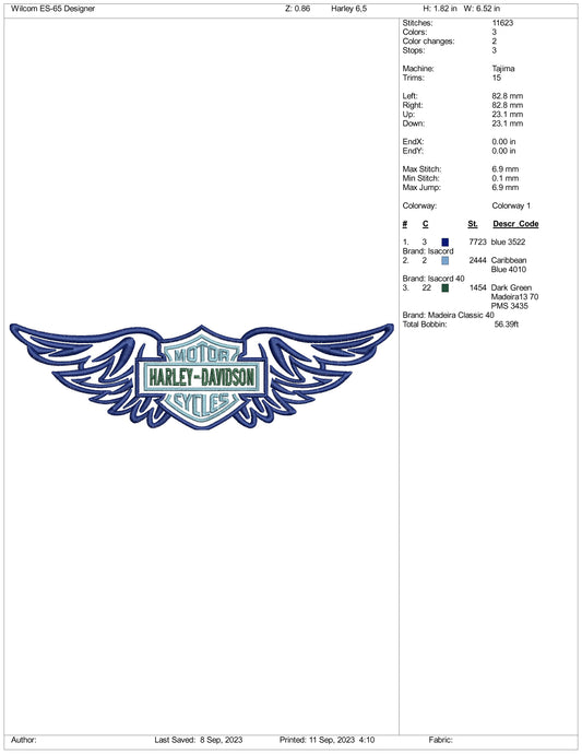 Archivos de diseño de bordado de Harley Davidson - 3 tamaños
