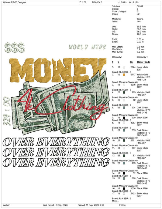 Archivos de diseño de bordado "El dinero ante todo" - 3 tamaños