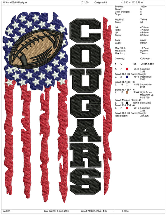 Archivos de diseño de bordado de los Cougars de EE. UU. - 3 tamaños