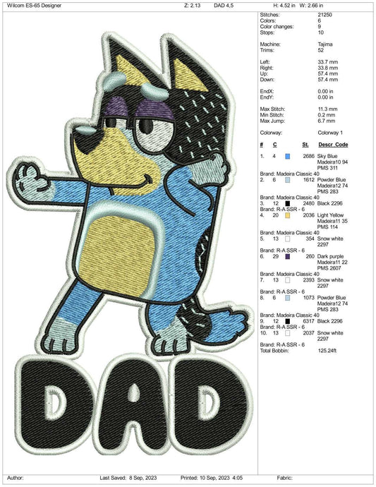 Archivos de diseño de bordado de Bluey Dad - 3 tamaños