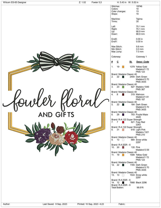Archivos de diseño de bordado floral de Fowler - 3 tamaños