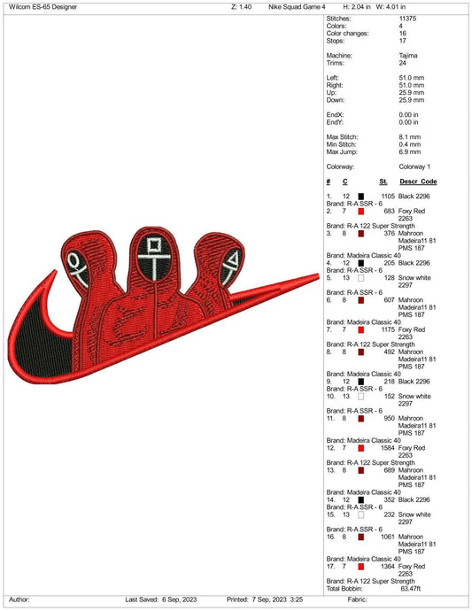 Archivos de diseño de bordado de Nike: Juego del Calamar - 4 tamaños