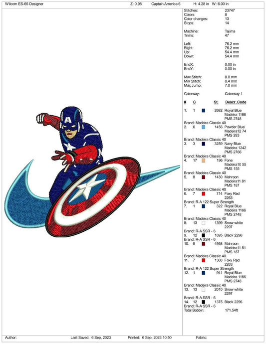 Archivos de diseño de bordado del Capitán América de Nike (3 tamaños)