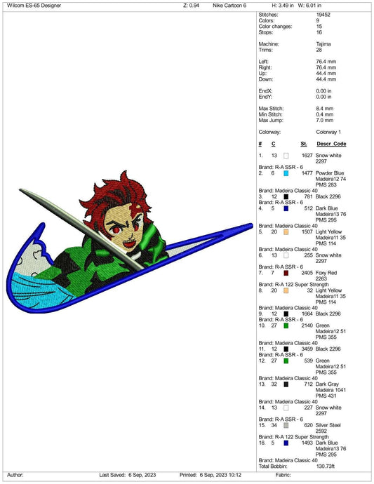 Archivos de diseño de bordado de Nike Tanjiro Kamado (3 tamaños)