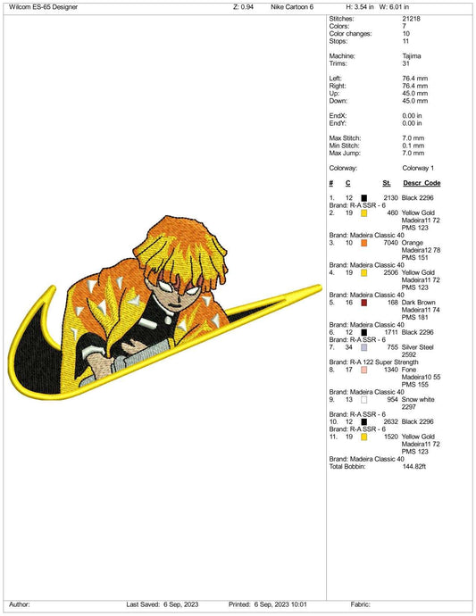 Archivos de diseño de bordado Nike Zenitsu (3 tamaños)