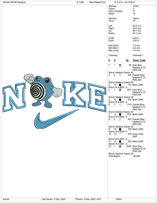 Archivos de diseño de bordado Nike Poliwhirl (3 tamaños)