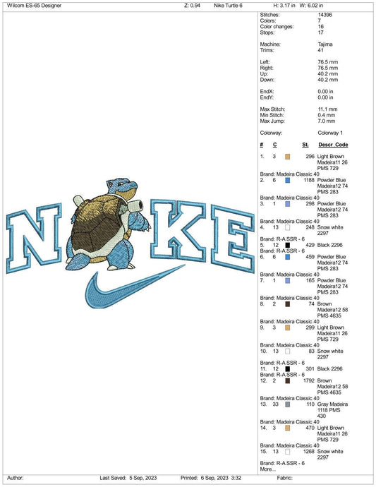 Archivos de diseño de bordado Nike Blastoise (3 tamaños)