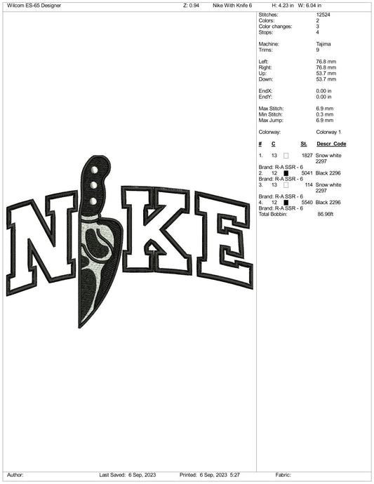 Archivos de diseño de bordado Nike Horror Knife v2 (3 tamaños)