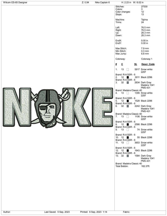 Archivos de diseño de bordado Nike Oakland Raiders - 3 tamaños