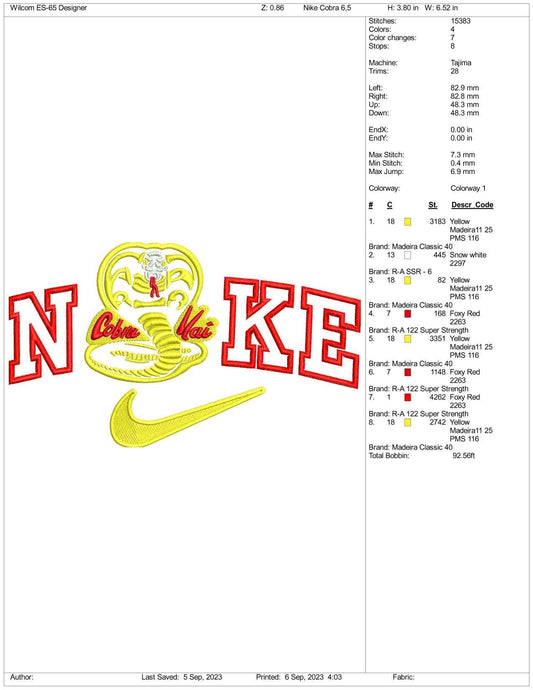 Archivos de diseño de bordado Nike Cobra (3 tamaños)
