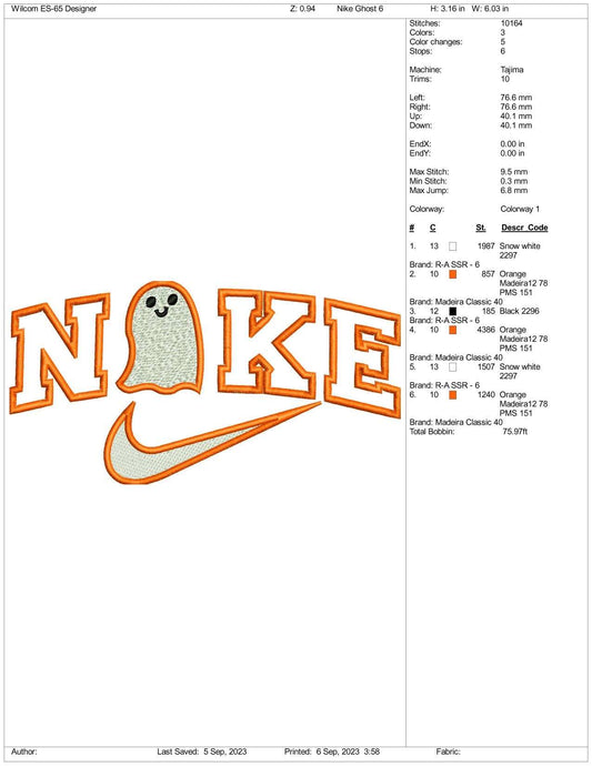 Archivos de diseño de bordado Nike Ghost (3 tamaños)