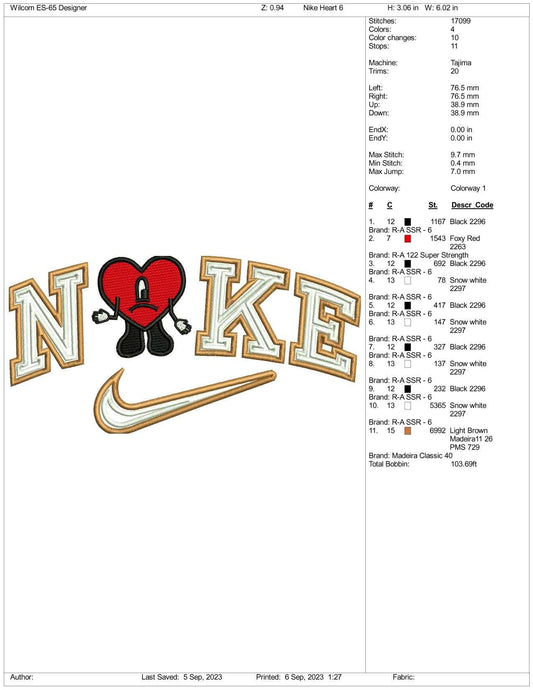 Archivos de diseño de bordado de corazón de Nike (3 tamaños)