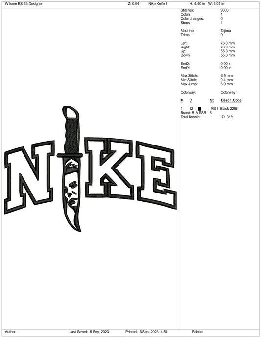 Archivos de diseño de bordado de cuchillo Nike Horror - 3 tamaños