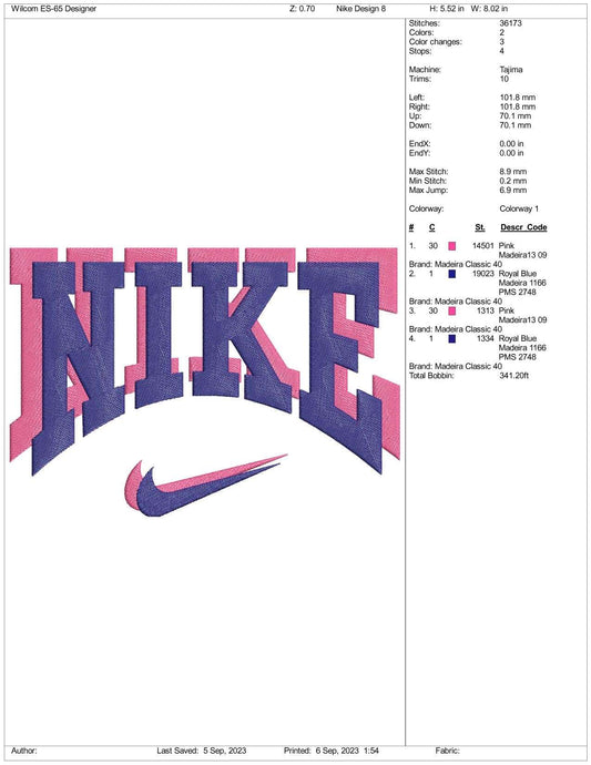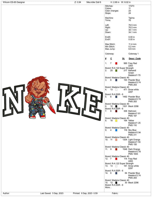 Archivos de diseño de bordado Nike Chuky - 3 tamaños