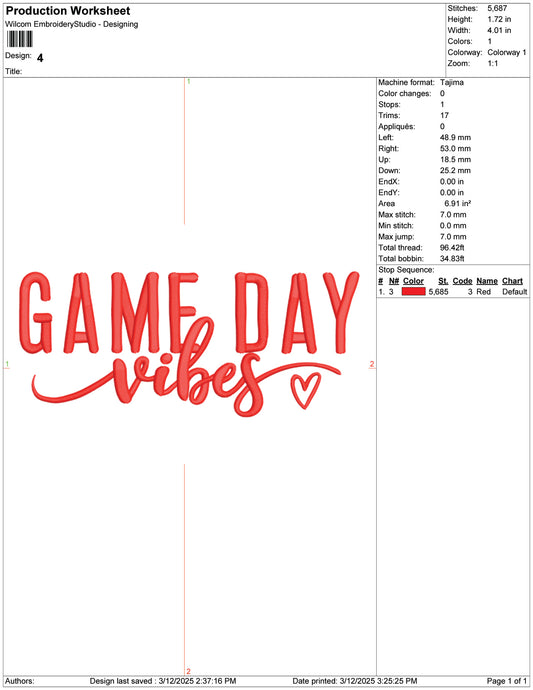Game Day Vibes Embroidery Design Files - 9 Size's