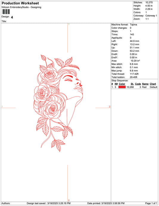 Girl Floral Muse Embroidery Design Files - 9 Size's