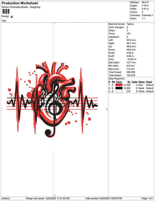 Heartbeat of Music Embroidery Design Files - 9 Size's