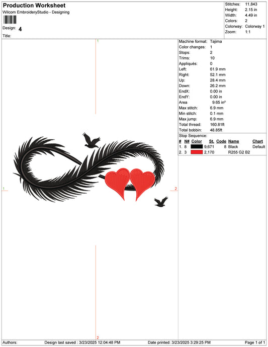 Feathered Infinity of Love Embroidery Design Files - 9 Size's