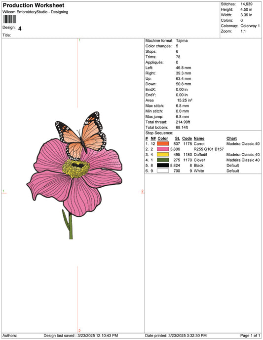 Butterfly Blossom Embroidery Design Files - 9 Size's