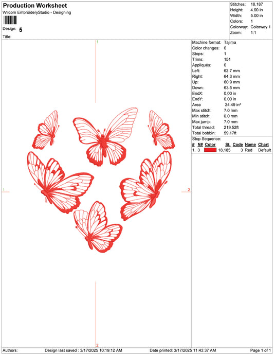 Butterfly Heart Embroidery Design Files - 9 Size's