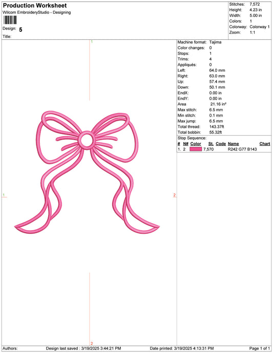 Chic Pink Ribbon Bow Embroidery Design Files - 9 Size's
