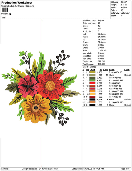 Beautiful Floral Bouquet Embroidery Design Files - 9 Size's