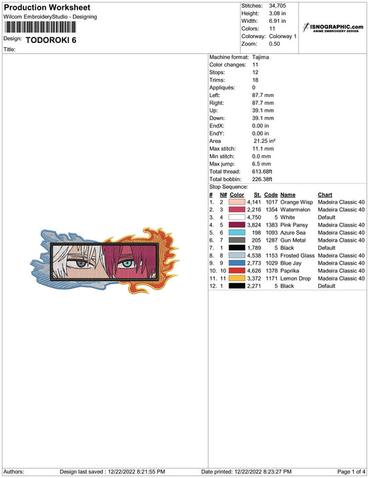 Shoto Todoroki v2 Embroidery Design Files - 4 Sizes