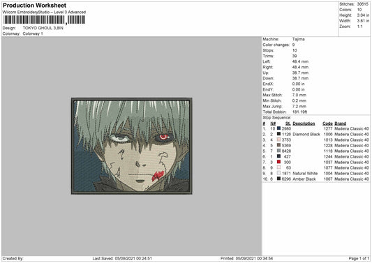 Ken Kaneki v5 Embroidery Design Files - 4 Size's