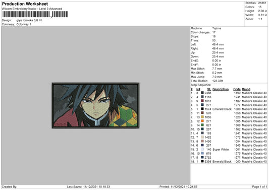 Giyu Tomioka v4 Embroidery Design Files - 4 Size's