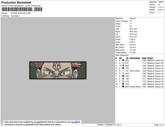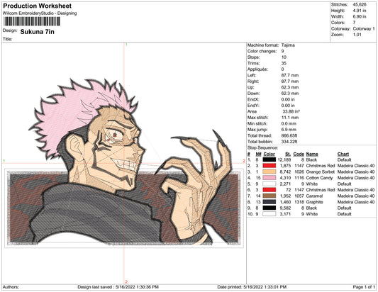 Ryomen Sukuna v3 Embroidery Design Files - 3 Size's