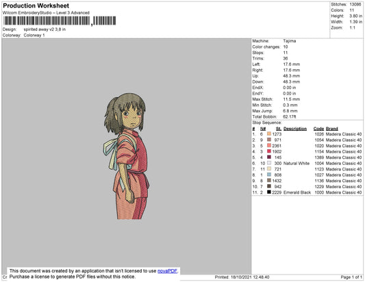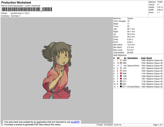 Chihiro Ogino v2 Embroidery Design Files - 4 Size's