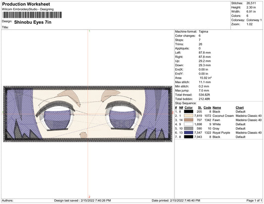Shinobu Eyes Embroidery Design Files - 3 Size's