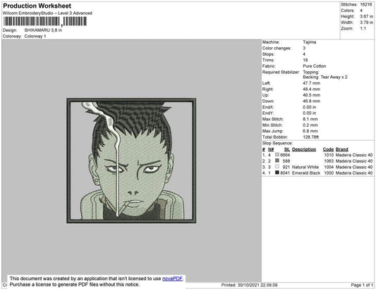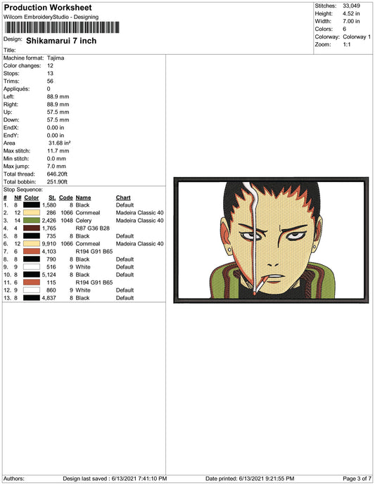 Shikamaru Nara v3 Embroidery Design Files - 4 Size's