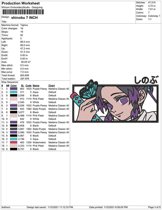 Shinobu Kocho v2 Embroidery Design Files - 4 Size's