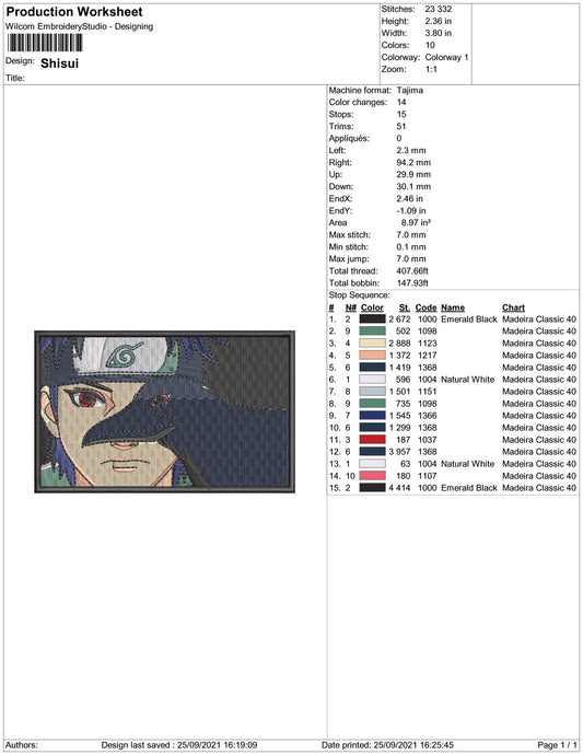 Shisui Uchiha Embroidery Design Files - 5 Size's
