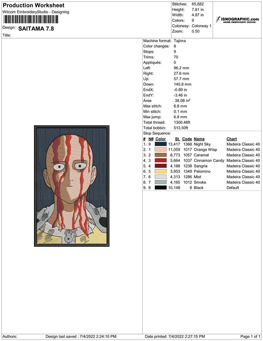 Sanji Line Art Embroidery Design Files - 4 Size's