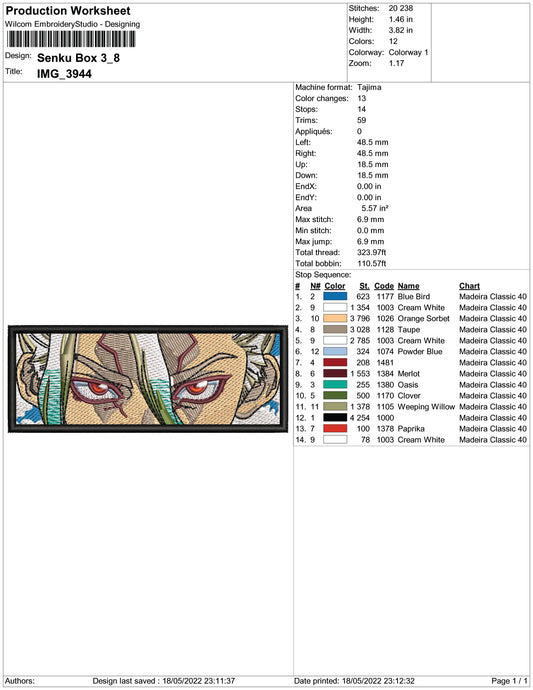 Senku Ishigami Eyes Embroidery Design Files - 3 Size's