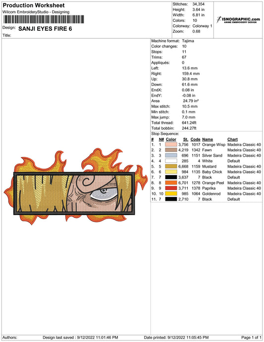 Sanji Eyes Fire Embroidery Design Files - 6 Size's