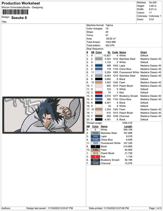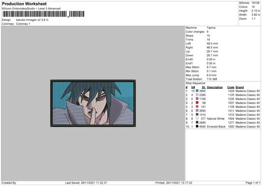 Sasuke Uchiha v6 Embroidery Design Files - 4 Size's