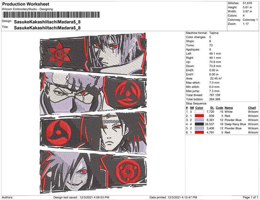 Sasuke Kakashi Itachi Madara Embroidery Design Files - 4 Size's