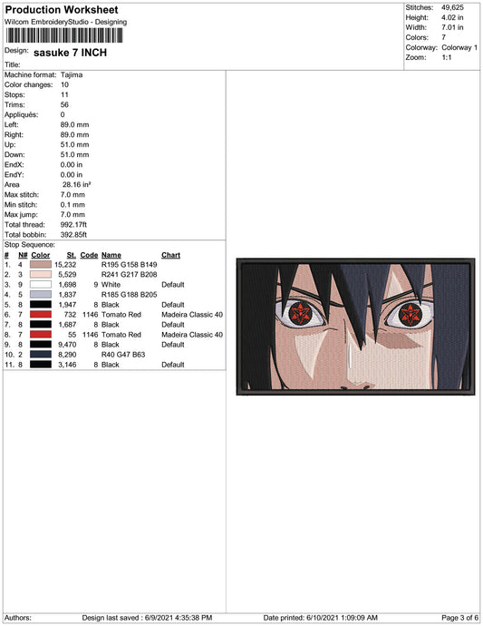 Sasuke Uchiha v7 Embroidery Design Files - 6 Size's