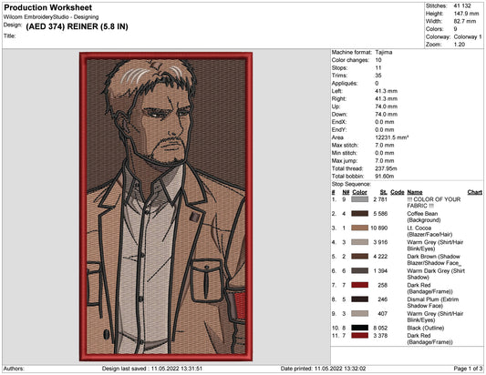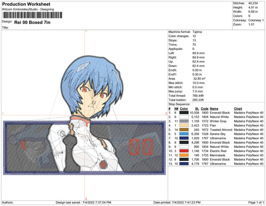 Rei Ayanami Embroidery Design Files - 3 Size's