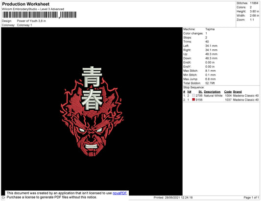 Might Guy Embroidery Design Files - 4 Size's