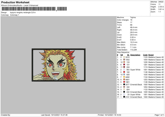 Kyojuro Rengoku v3 Embroidery Design Files - 4 Size's