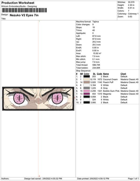 Nezuko Kamado Eyes v3 Embroidery Design Files - 3 Size's